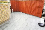 緑豊かな川辺に佇む邸宅。カフェのようなウッド調の外壁が目を引く1棟。