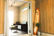 「半屋外空間のインナーガレージ」がコンセプト。タイル貼りのホビールームと隣接しているので使い方を限定させず室内空間ともつながり暮らしを楽しめる半屋外スペースになりました。