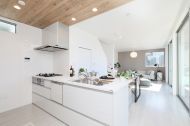 広々としたウッドデッキを中心に土間の部屋(ホビールーム)、LDK、お庭がつながっているので自然と家族の存在を感じることができます。LDにある大きな窓を全開にしてお庭でBBQやプールなどを楽しむのもGood!