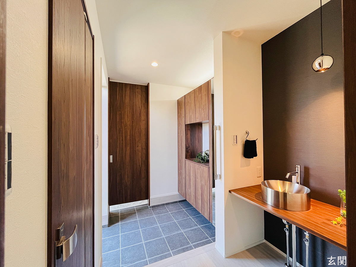 玄関を中心に22帖のLDKと外から直接出入り可能な土間部屋。そして土間部屋とつながる和室。2階には主寝室につながるルーフ付きの広々としたバルコニーを配置。自然の音を感じ、夜空を見ながらの晩酌などワンランク上の暮らしを実現できます。広い敷地を最大限活かし、ゆとりのあるプランで他にない1棟になりました。