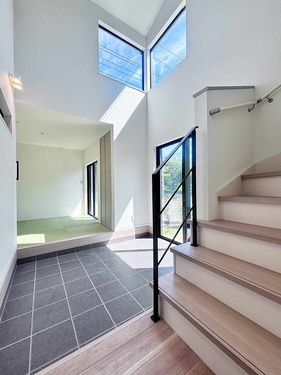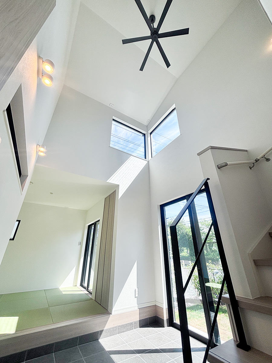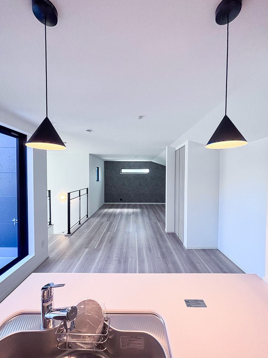 和室・庭・LDKと吹抜けを通じてつながる土間部屋があることで家全体がつながり家族を感じることができます。土間部屋の横には和室があるのでお子様の遊び場としてもおすすめ♪LDKは21帖超あり開放感抜群!キッチン裏に浴室・洗面室・お手洗いが集まっているので家事動線も◎、キッチン横の2帖の書斎は在宅ワークスペースとしてはもちろん、ランドリールームやパントリーとしても使用することができます!また4帖弱のバルコニーはプールやお家ピクニックなどにも使えるプライバシーが守られた空間♪ “こだわり”と“あったらいいな”をつめこんだ1棟です。